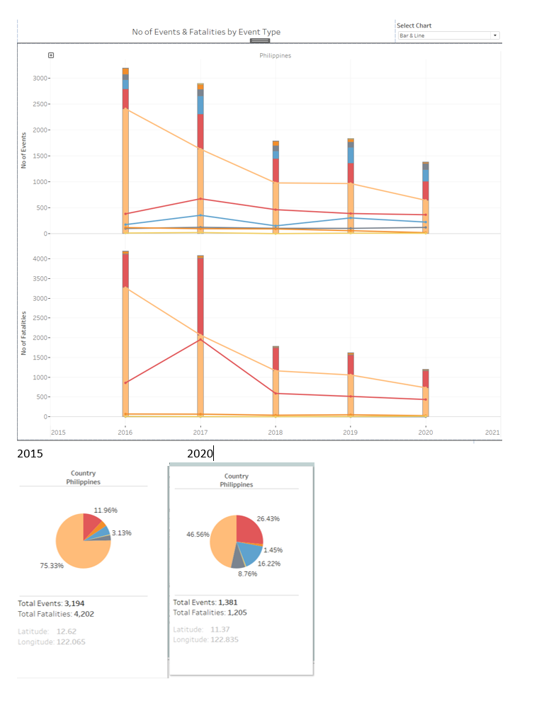 Despite have a great reduction in events and fatalities from 2015 to 2020, Philippines is still the highest in fatalities and second highest in number of events in 2020.